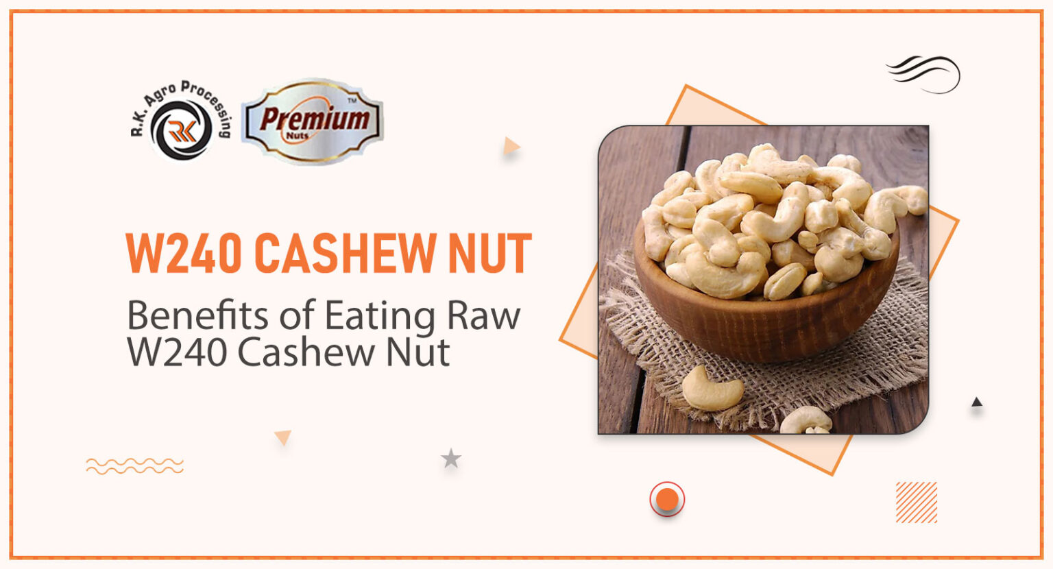 Find R.K. Agro Processing if you want any delicious and nutritious W240 Cashew nuts. We are the leading W240 Cashew Nut manufacturer in India. According to our devoted customer base, we produce the finest W240 cashew nuts available. This is because our product meets or exceeds all applicable international standards and the high quality we consistently provide. That makes diners happy with their food.